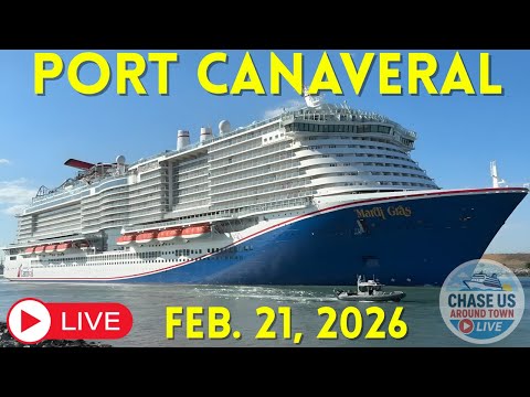 Join us live from Port Canaveral to watch the cruise ships sail away out to sea! From Jetty Park in Florida, we are live streaming all the ships leaving the cruise terminals! Join and chat with us, and other cruise ship enthusiasts. Watching the sail away of Disney Treasure, Celebrity Apex, Explorer of the Seas, Carnival Vista, MSC Grandiosa and Carnival Mardi Gras! A magical day of cruise ship spotting from Port Canaveral live. Thank you for watching Chase Us Around Town on Valentines Day!!!