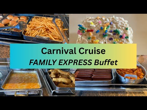 See menus, food video, and pictures of Carnival Cruise Line's new Family Express Buffet line concept at lunch. This line offers a variety of family and popular kid favorites each day of the cruise and is complimentary. Carnival has been working to roll-out fleetwide.