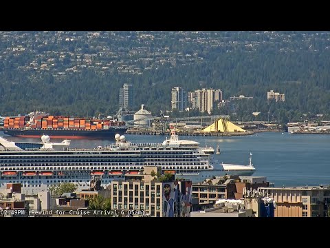 Live camera of Sunrise & Grand Princess Cruise Ship departure in Vancouver Harbour. Plus live streaming sunset over the city, sunrises over the mountains & cruise ship departures. Many Vancouver Harbour, Seawall & False Creek waterfront views. This live stream in Vancouver will show cruise ship arrivals & departures.