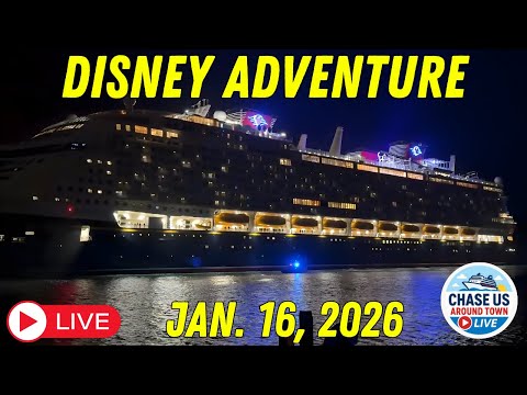 Join us live from Port Canaveral to watch the Disney Adventure cruise ship first ever sail away from the US! From Jetty Park in Florida, we are live streaming this amazing early morning Disney Cruise Line departure! Join and chat with us, and other cruise ship enthusiasts. Thank you for watching Chase Us Around Town!!!