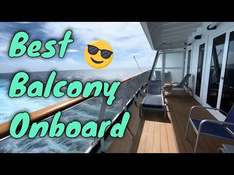 Largest cabin balcony onboard, the Vista Suite on Carnival Spirit class ships: Pride, Legend, Spirit, and Miracle Deck four gives you the most balcony square footage. #carnivalcruiseline #royalcaribbean #ncl #norwegiancruises #celebritycruiseline #cruiselife
