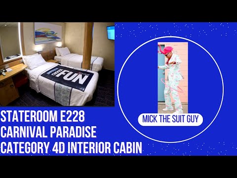 A Tour of Cabin E228 a Category 4D Interior Stateroom on Carnival Paradise, Beware the Pole that doesn't allow a King Sized Bed !!