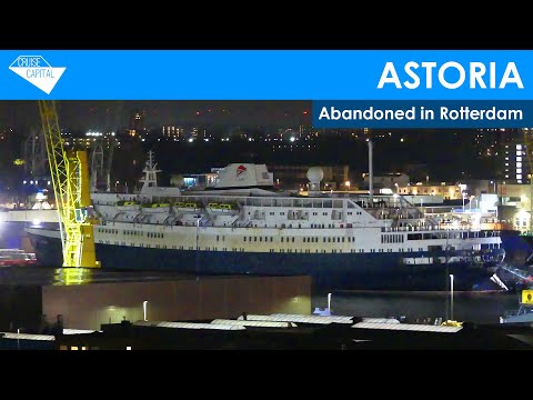 Sailing past the laid-up and abandoned Astoria in the port of Rotterdam, having been last operated by Cruise & Maritime Voyages in 2020.