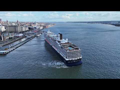 Nieuw Statendam leaving Liverpool and heading to Greenock in Scotland. She is a Passenger Ship and is sailing under the flag of Netherlands and she is 299m lo0ng and 40m wide and her call sign is PBCO