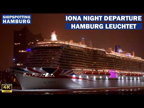 ⚓️Winterauslaufen der IONA aus dem nächtlichen und erleuchteten Hamburg. Durch das Eis der Elbe pflügt sich das schöne Kreuzfahrtschiff am Konzerthaus Elbphilharmonie vorbei und passiert die Landungsbrücken. Danach geht es für das Schiff direkt weiter zum nächsten Hafen Rotterdam. P&O Cruises ist eine Marke des britisch-amerikanischen Kreuzfahrtunternehmens Carnival Corporation & plc für Kreuzfahrten im englischsprachigen europäischen Markt. Markenzeichen ist der Schriftzug P&O, in Anlehnung an die Herkunft aus der ehemaligen Peninsular and Oriental Steam Navigation Company (P&O).