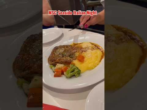 Tonight in the Main Dining Room aboard the MSC Seaside, I’m diving into some seriously good Italian classics — crispy Chicken Parmesan, tender veal, and creamy polenta done right. This is why I love cruising… you unpack once and eat like this every night!
