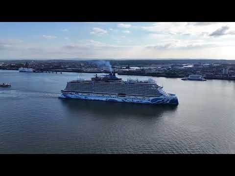 Norwegian Prima Cruise Ship leaving Liverpool and heading to Le Havre. She is a Passenger Ship and is sailing under the flag of Bahamas. Her length overall is 299 meters and her width is 40.5 meters and her call sign is C6FB3.