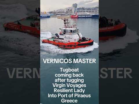 Coming back after tugging Virgin Voyages Resilient Lady into Port of Piraeus in Greece the port closest to Athens
