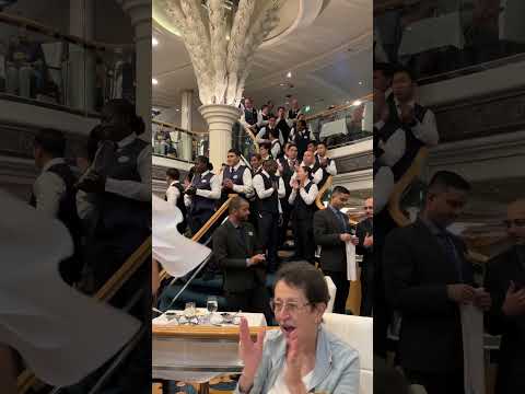 On Royal Caribbean's Vision of the Seas, during the voyage all the Waiters, Assistant Waiters, Head Waiters, and Waitresses came out to Dance!