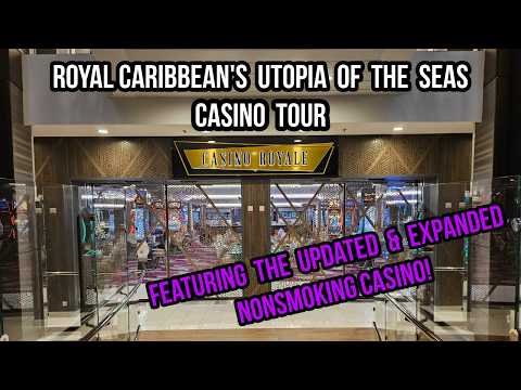 Join me as I take you on a full walkthrough tour of Casino Royale onboard Royal Caribbean's Utopia of the Seas. It is currently Royal Caribbean's biggest casino at sea. Also don't miss the newly expanded Nonsmoking Casino. They have completely changed the layout of that portion of the ship.