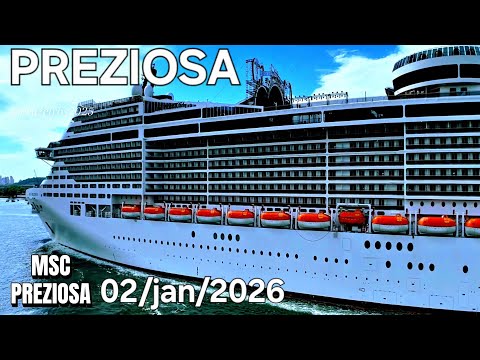 NAVIO DE CRUZEIRO MSC PREZIOSA 02/01/26 navio Santos ship @cruzeiros2025 #drone chegando