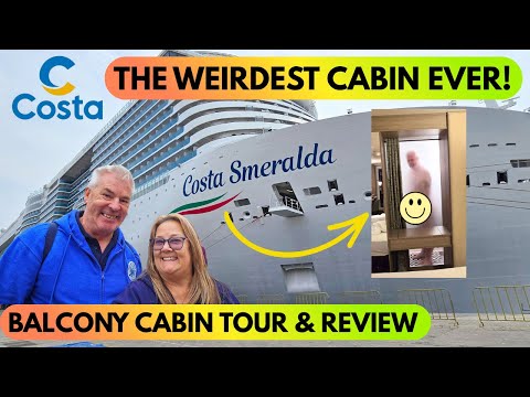 We stayed in balcony cabin (called a sea balcony on Costa) cabin number 12140 during our Costa Smeralda Cruise. It was certainly the strangest cabin we have stayed in, on all of our 60 cruises. Come and have a look around.