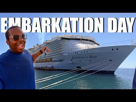 Today is embarkation day on Harmony of the Seas sailing from Galveston, Texas on a 7-night Western Caribbean itinerary (Cozumel, Roatán, Costa Maya). I’ll show you what to do right after boarding, share embarkation day tips, and take you on a mini ship tour of major public areas — plus holiday fun onboard!
