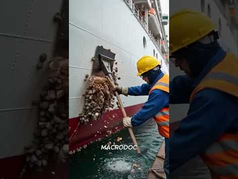 Watch this satisfying industrial barnacle removal process in a real dry dock setting.