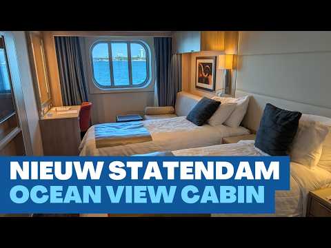 This is cabin 1042, an Ocean View cabin on Nieuw Statendam, a Pinnacle class cruise ship from Holland America Line, originally launched in 2018.