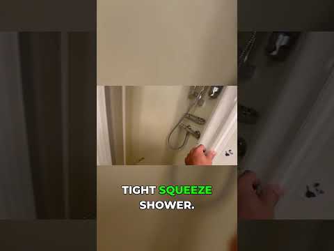 Take a look inside this functional small bathroom, perfect for compact living spaces like a cruise ship cabin This cruise ship bathroom highlights how essential amenities are fitted into a tiny bathroom design, making the most of every inch.