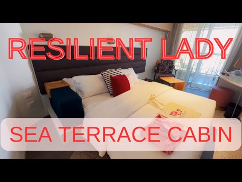 Cabin 14170Z is a standard sea terrace (or balcony cabin) on Virgin Voyages Resilient Lady. One of my favorite features of this room was the overhang on the balcony that kept me cool and comfortable while sitting out and enjoying the ocean breeze.