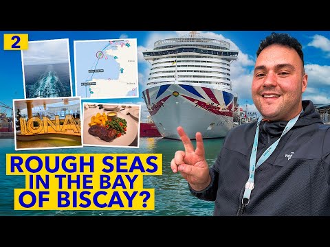 Join us on the P&O Iona Canaries Cruise as we navigate the rough seas of the Bay of Biscay. Watch the waves crash against the ship in this thrilling adventure on the high seas!