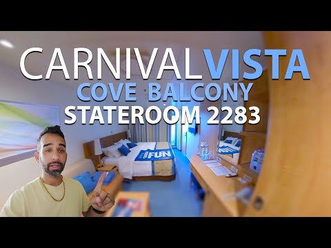 Hi friends. This video offers a tour of a Cove Balcony Stateroom (Room 2283) on Deck 2 of the Carnival Vista cruise ship (0:00-0:08).