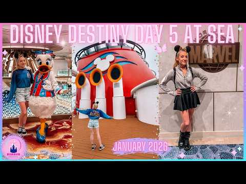 I finally got to show the Merida from Pixar Brave and Megara from Hercules cafe's on Deck 4 & 5 before meeting Rapunzel & Flynn from Tangled, they were so amazing, we were talking about adding some new colours of flowers to Rapunzel's hair braid! I quickly had time to meet Tiana from Princess and the Frog before changing into my Marvel outfit with my Avengers Campus Disneyland Paris top as I ate in Worlds of Marvel for the last evening. They had artwork on the screens and then I quickly saw the see ya real soon before doing my outro in the Haunted Mansion Parlour!