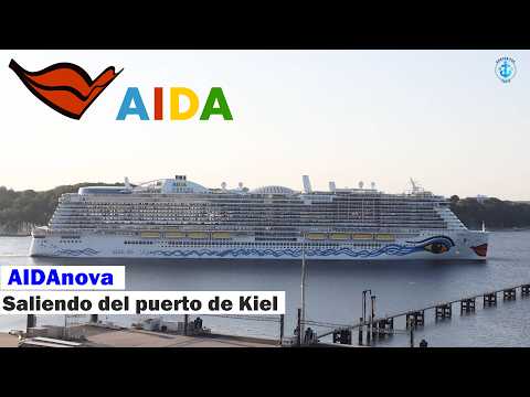 Maniobra de salida del crucero AIDAnova del puerto de Kiel en Alemania --------------------------------------------------------------------------------- Video protegido por derechos de autor©