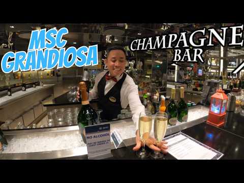 Greetings fellow travelers and cruisers join us at the Champagne Bar on MSC Grandiosa, located on Deck 7 (Michelangelo) near the atrium, is a chic, intimate venue specializing in premium sparkling wines, caviar, and fresh seafood (oysters, crab). Open for pre- or post-dinner drinks, it offers around 20 seats and is known for its quiet atmosphere with background piano music, priced mostly between $15–$30. The venue does include the pre-paid drink packages.