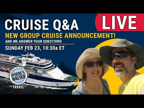 Join Where's Walter Travel for our weekly Sunday Morning Live Cruise Q&A. February 23 at 10:30a ET, 7:30a PT. By Popular Demand, we will be announcing a Mediterranean Group Cruise! The thumbnail image is a hint. Start off your Sunday with a little cruise chat! We'll talk cruise news, cruise views and we do our best to answer YOUR questions about cruising, cruise cabins, cruise lines and all things cruising! We'll do our very best to get you the answers.