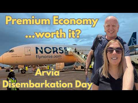 In this vlog we take you through the full Arvia disembarkation process in Bridgetown, show you what happens after leaving the ship, and then fly home to the UK with Norse Atlantic Airways in Premium Economy.
