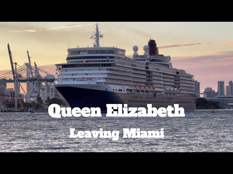 Watch the elegant Queen Elizabeth cruise ship make her way out of PortMiami through the Government Cut channel.