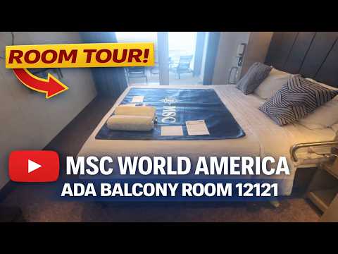 Take a full walkthrough of an ADA accessible balcony cabin on MSC World America, room 12121. This tour shows how the layout is designed for accessibility, with extra space, roll-in shower access, and thoughtful features throughout the cabin.