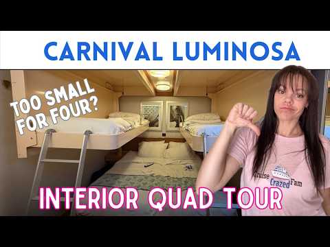 Take a tour of Carnival Luminosa Interior Quad Cabin 7274. This interior cabin technically sleeps four, but as a family of four we found it small and cramped, and not very practical for our needs. That said, it could be a good option for two people or for anyone looking to save money on their cruise.